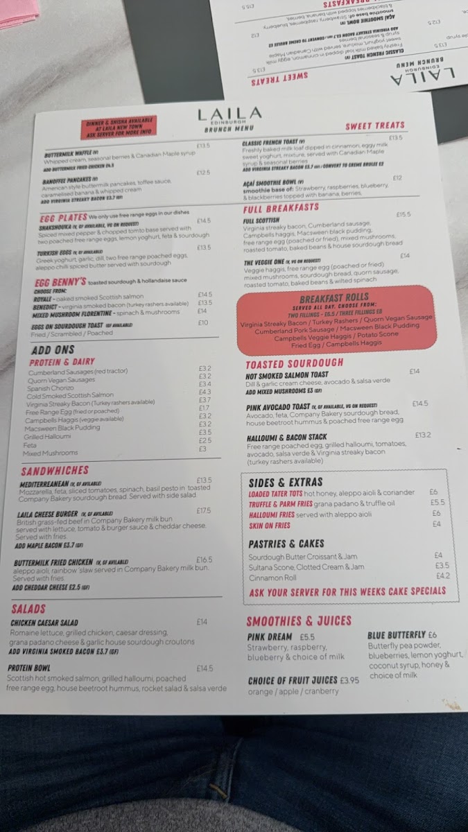 Welcome to Laila Lunch & Brunch, nestled on Edinburgh's charming Cockburn Street. This delightful eatery offers a vibrant menu that tantalizes the taste buds. To start, Aleppo Eggs gracefully blend poached free-range eggs with herbed yoghurt and Aleppo butter, served with warm pitta. For something refreshing, the Pink Avocado Toast features a delightful mix of avocado and beetroot hummus, topped with feta and a poached egg.
